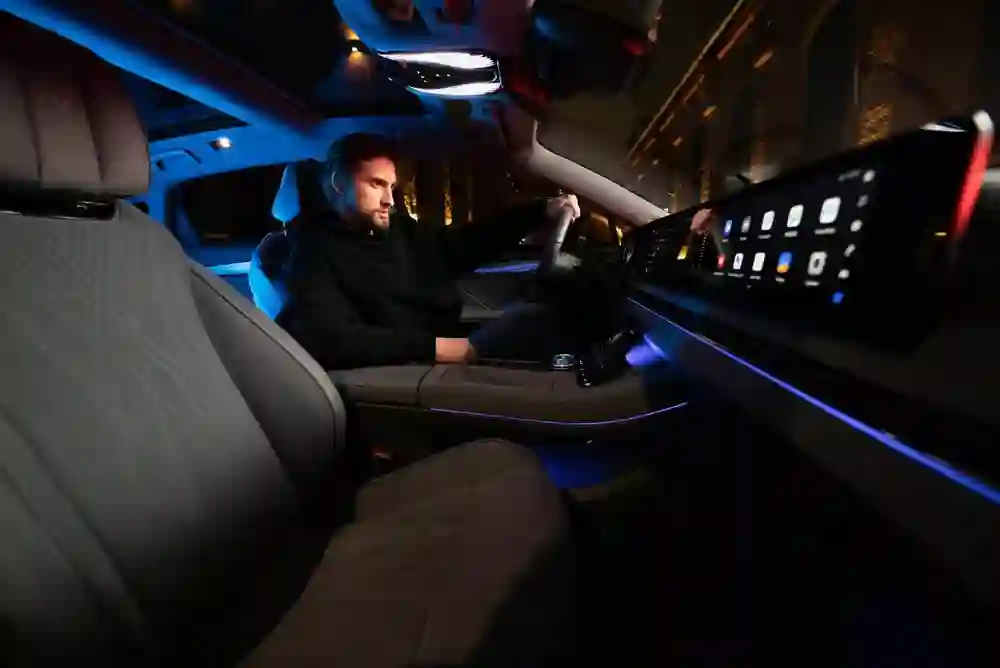 Мода циклична, и внутри Passion больше всего напоминает салоны тех самых американских дорожных крейсеров сорокалетней давности. Он просторный, функциональный и главное — практически целиком замшевый. За исключением тех мест, которые быстрее всего изнашиваются: дверные ручки и кромки сидений кожаные, все остальное алькантара. Кто-то назовет этот материал непрактичным и марким, но вместе с тем нельзя отрицать, что он приятный и оптимальным для тех, кто с ним соприкасается. Летом на нем не потеет спина, а в мороз он теплый — в отличие от кожи. Да, в Voyah Passion есть и обогрев, и вентиляция сидений, и даже массаж, но замшевый салон в сочетании с контурной подсветкой создает особенный благостный уют.